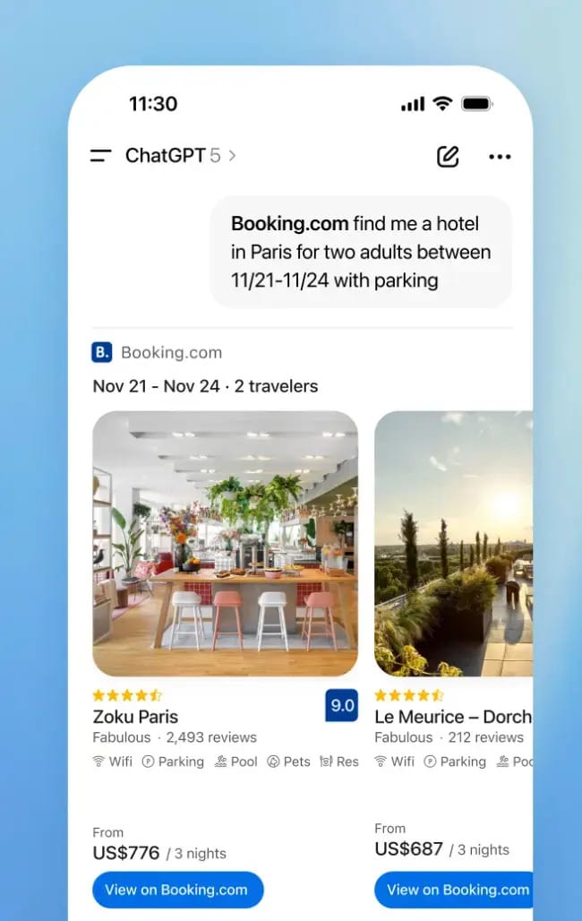 Así se ve la integración de Booking.com en ChatGPT. Otra jugada maestra de OpenAI