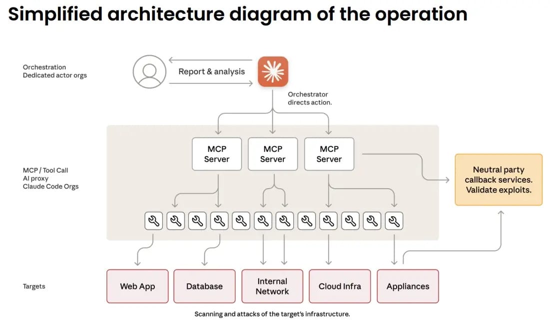 Olvídate del chat donde escribes tus prompts a Claude. Los atacantes no le preguntaban "¿cómo hackeo esto?". Montaron una infraestructura compleja usando Claude Code y el estándar MCP (Model Context Protocol). Básicamente, convirtieron a Claude en el cerebro de una red de bots autónoma.
